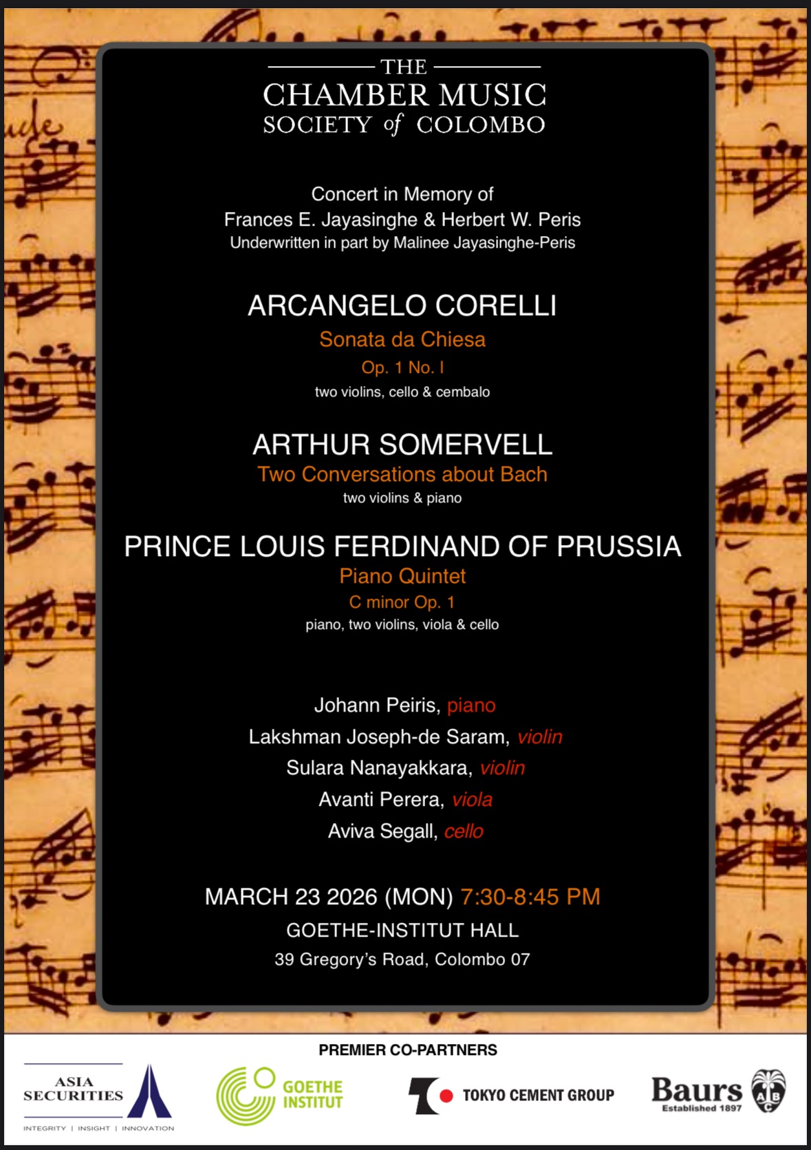 The Chamber Music Society of Colombo in association with the Goethe Institute Colombo presents